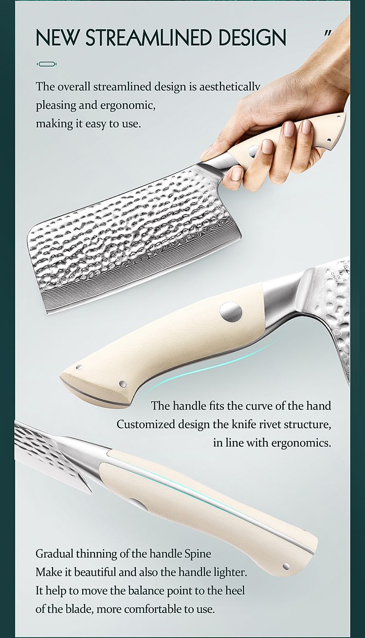 Благодаря своей эргономичной форме и продуманной рукоятке из G10, работа с этим ножом будет приятной в течение длительного времени. Клинок изготовлен из стали 10Cr15CoMoV в обкладке из дамасской нержавеющей стали 316/316L 67 слоев.