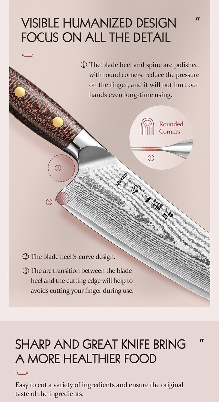 Бренд Hezhen основан на идее сделать исключительные ножи доступными для людей по всему миру. Мы считаем, что качественные инструменты не должны рассматриваться и оцениваться как символы статуса, а как инструменты для улучшения жизни людей. Качественные острые ножи делают приготовление пищи проще, безопаснее и веселее. Наша цель - улучшить жизнь людей и их отношение к приготовлению пищи благодаря нашей изобретательности, качеству и дизайну. Исследования показывают, что обычные люди в среднем тратят много лет своей жизни на приготовление пищи. Наша миссия - предлагать ножи самого высокого качества широкому кругу потребителей, начиная от однолезвийных стальных лезвий и заканчивая чрезвычайно сложными многослойными суперсталями. Улучшать жизнь людей, по одному ножу за раз, от шеф-поваров мирового класса до любящих мам и бабушек.