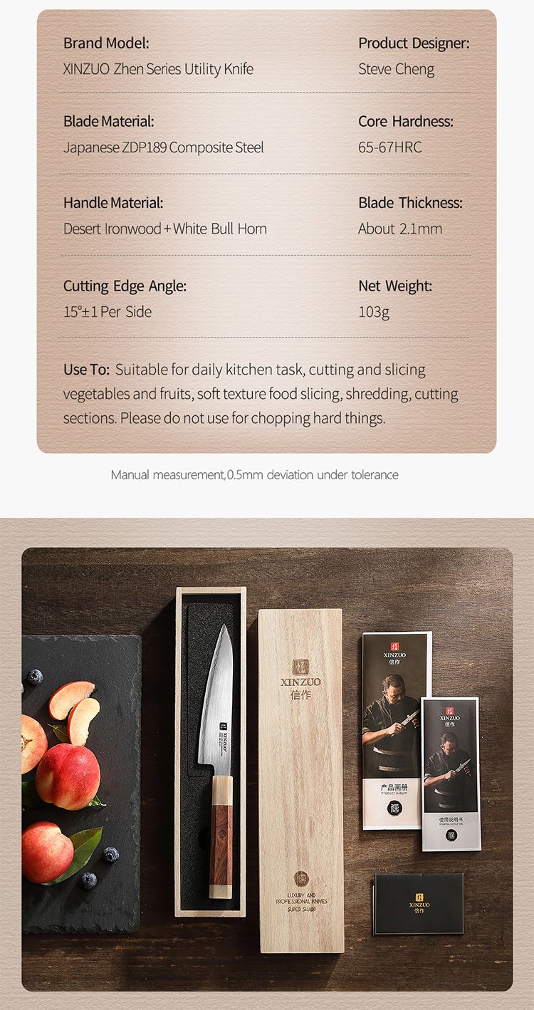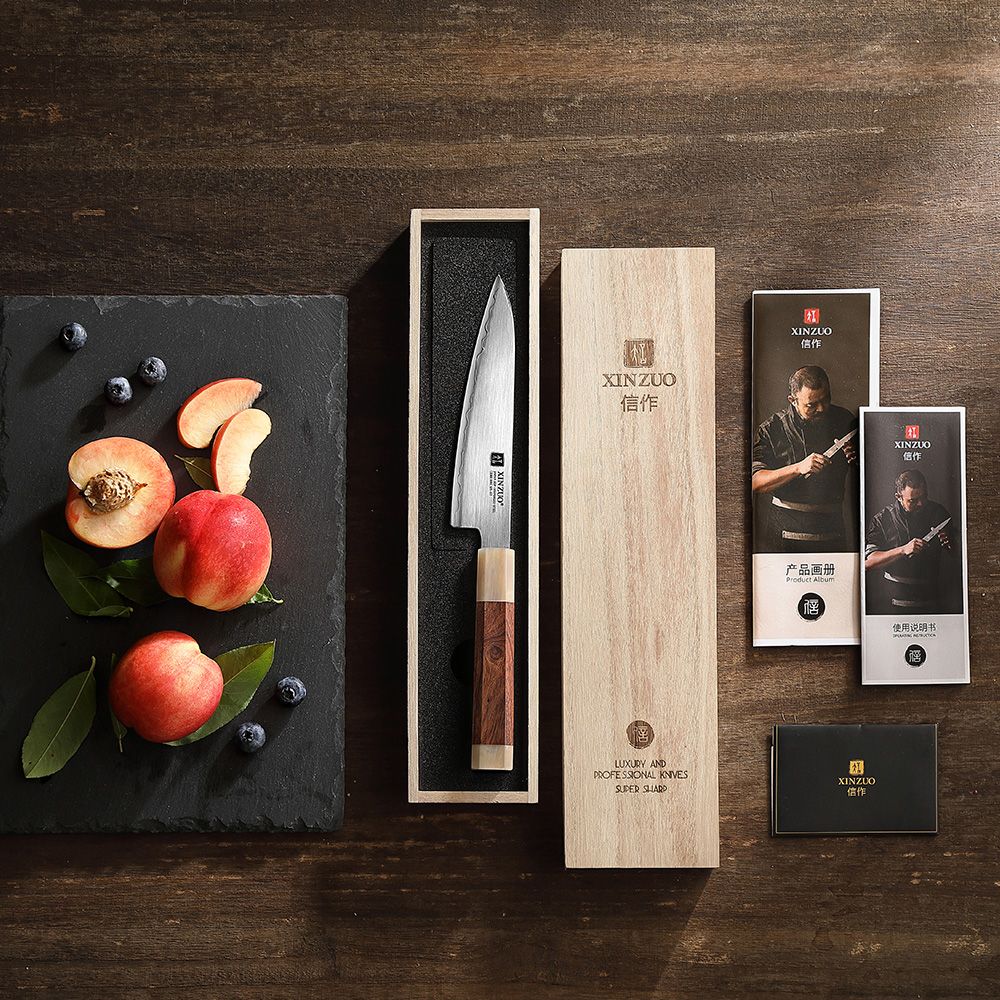 Бренд Xinzuo основан на идее сделать исключительные ножи доступными для людей по всему миру. Мы считаем, что качественные инструменты не должны рассматриваться и оцениваться как символы статуса, а как инструменты для улучшения жизни людей. Качественные острые ножи делают приготовление пищи проще, безопаснее и веселее. Наша цель - улучшить жизнь людей и их отношение к приготовлению пищи благодаря нашей изобретательности, качеству и дизайну. Исследования показывают, что обычные люди в среднем тратят много лет своей жизни на приготовление пищи. Наша миссия - предлагать ножи самого высокого качества широкому кругу потребителей, начиная от однолезвийных стальных лезвий и заканчивая чрезвычайно сложными многослойными суперсталями. Улучшать жизнь людей, по одному ножу за раз, от шеф-поваров мирового класса до любящих мам и бабушек.